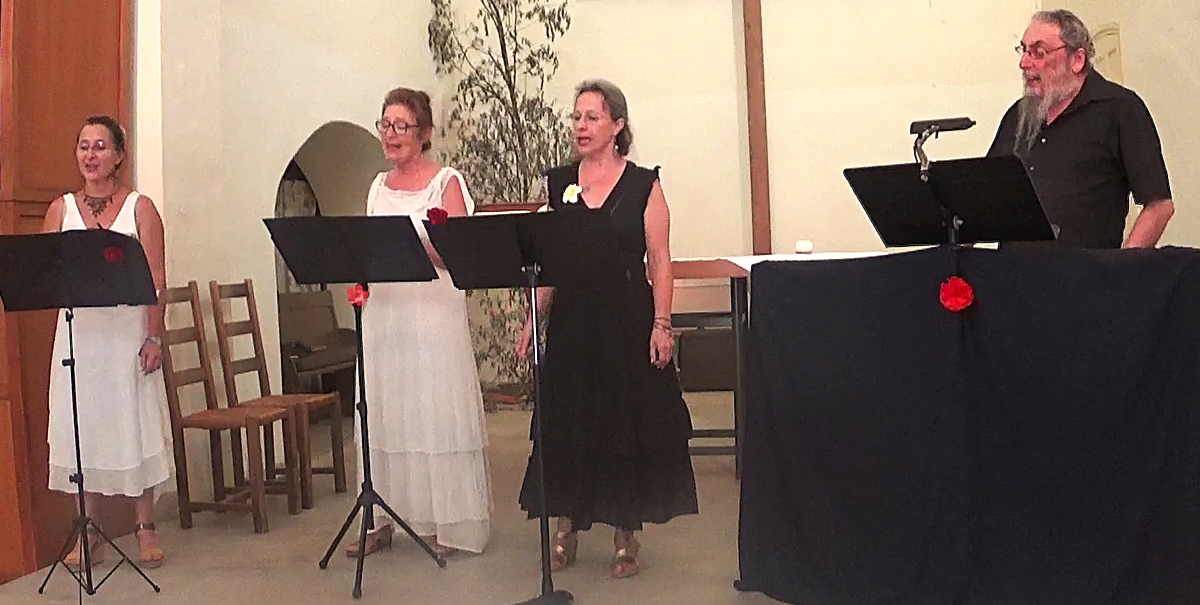 Concert du Quatuor Éphémère, composé de trois chanteuses, dont Isabelle Finck qui les dirige, et d’un pianiste accompagnateur, également chanteur et arrangeur, Jean-Paul Finck.